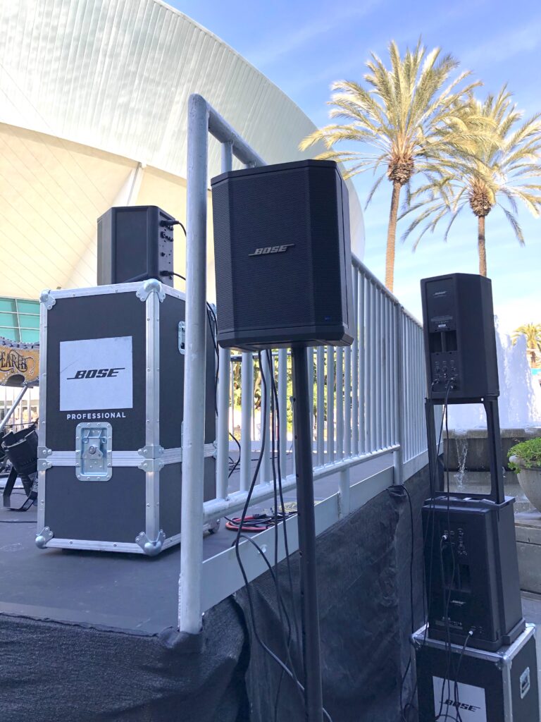 On real jobs these have worked well as overflow zone speakers and last minute stage monitors for unexpected musical guests. They’ve worked as an after-party bluetooth speaker for small weddings as we pack up the band. They make great speakers for musicians performing at wedding ceremonies, as well as acoustic musicians in any context. Backstage they have performed great as monitors for video world, and in client green rooms on corporate jobs.